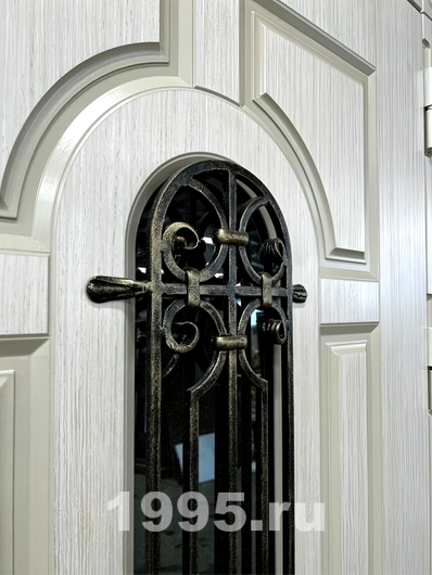 Арочная дверь со стеклом и решеткой